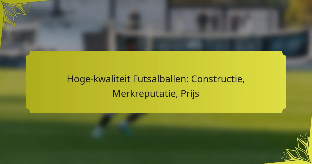 Bij het vergelijken van populaire futsalbalmerken spelen factoren zoals materiaal, gewicht en ontwerp een rol. Merken zoals Adidas, Nike en Molten domineren de markt, waarbij elk unieke kenmerken biedt. Bijvoorbeeld, Adidas-ballen benadrukken vaak controle en touch, terwijl Nike zich richt op duurzaamheid en prestaties. Het begrijpen van deze verschillen kan spelers helpen de beste bal voor hun behoeften te kiezen.